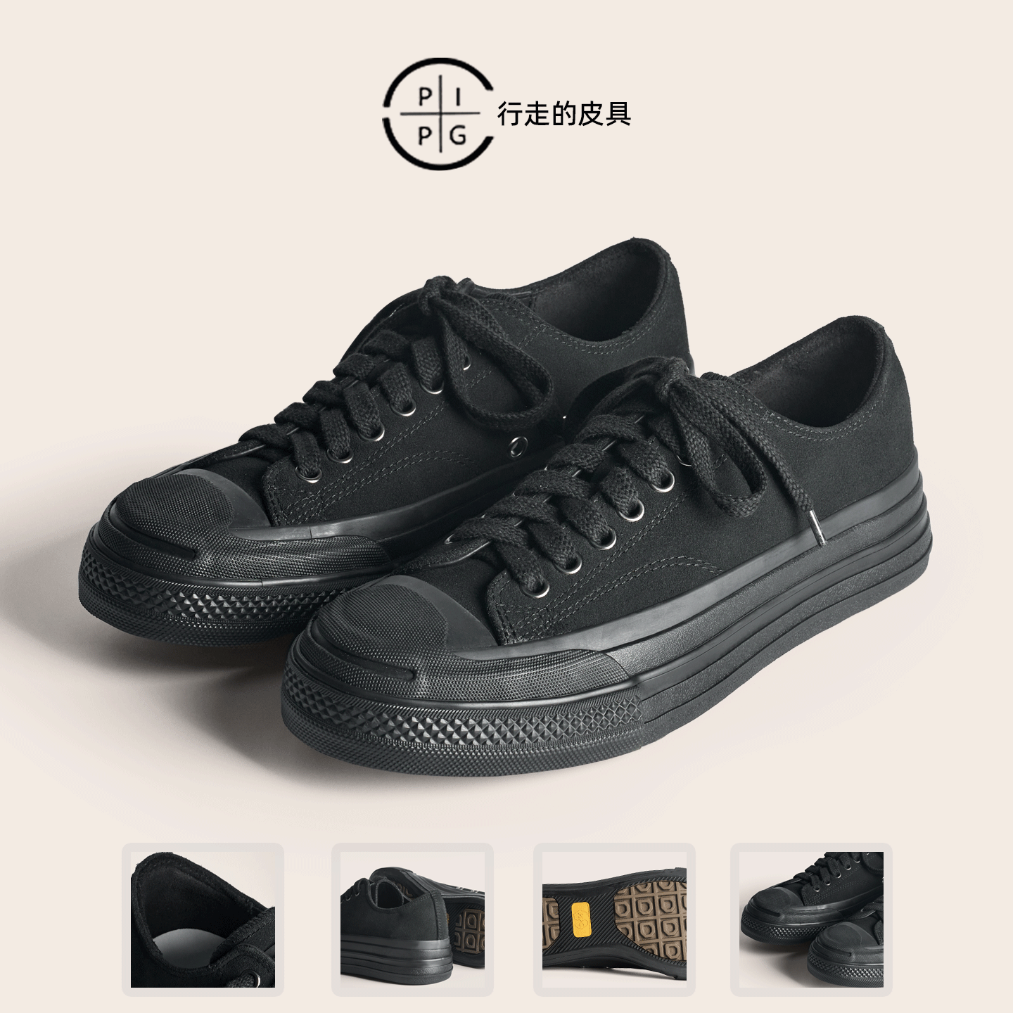 PIPG男女复古帆布鞋反毛皮 厚底增高百搭硫化鞋日系 通勤休闲板鞋
