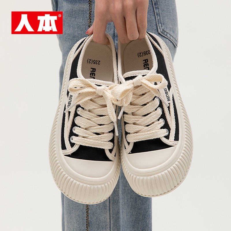 人本官方2025春季新款大头鞋面包鞋女款复古帆布鞋百搭饼干鞋板鞋