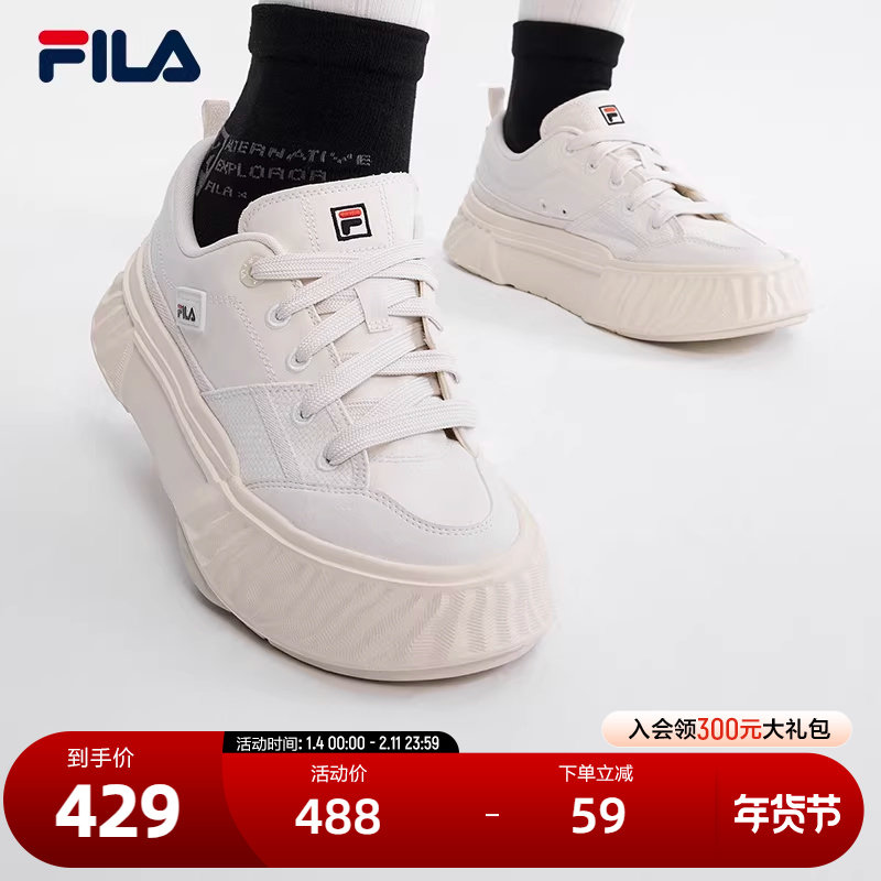FILA斐乐女子复古帆布鞋春夏潮流厚底轻便舒适斐乐岩行鞋休闲鞋