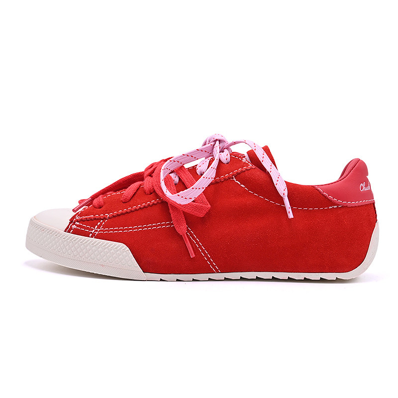 超拽SUPERDRAG 酒红翻毛皮街头复古帆布鞋男女低帮耐磨运动滑板鞋