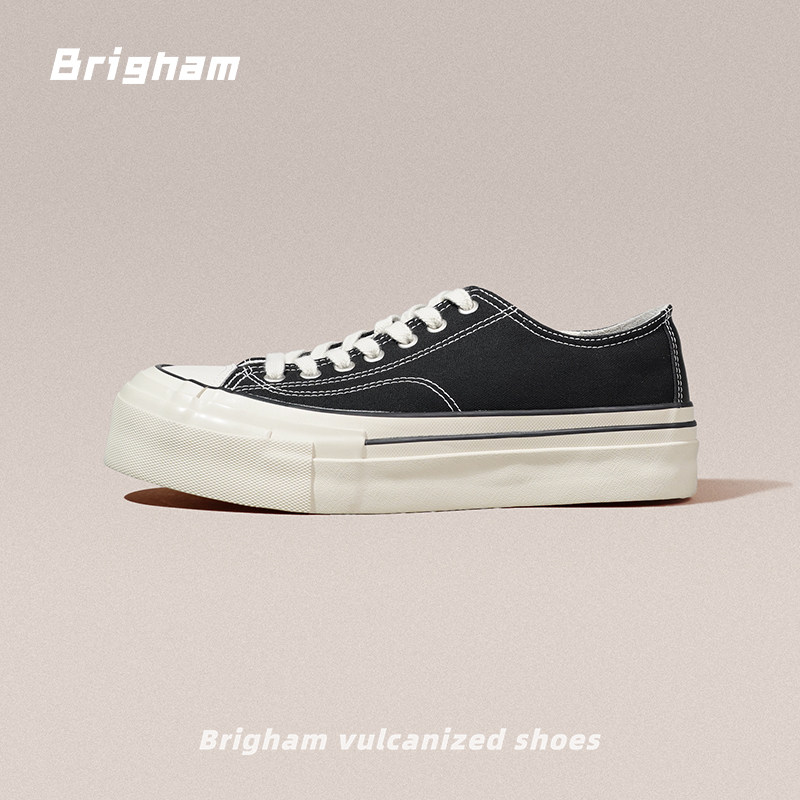Brigham秋冬款牛反绒增高厚底硫化鞋男士低帮休闲复古帆布鞋板鞋