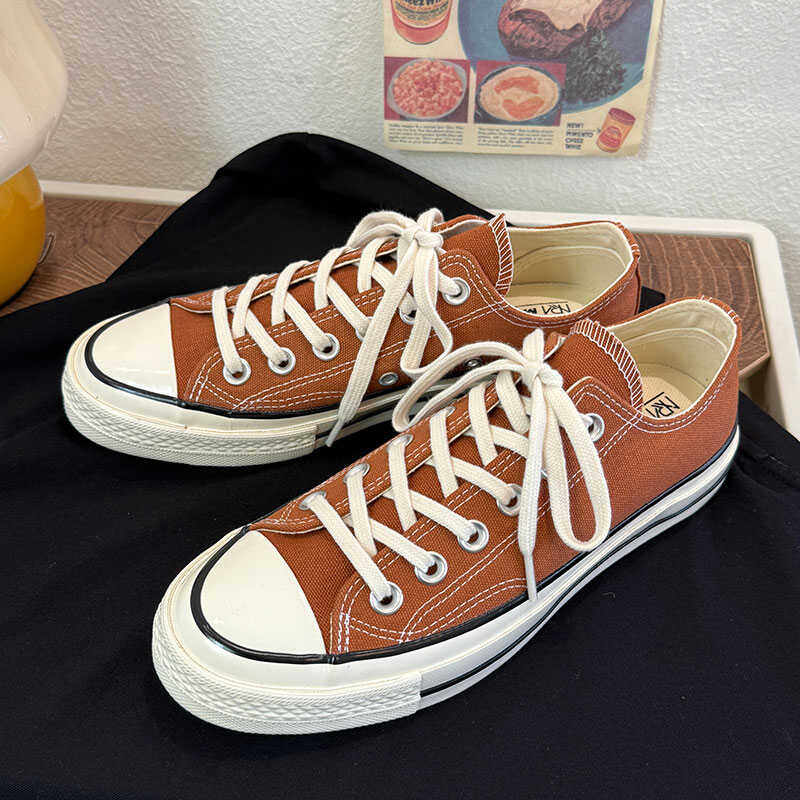 焦糖色低帮男女同款情侣时尚青春潮流百搭学院港风休闲复古帆布鞋