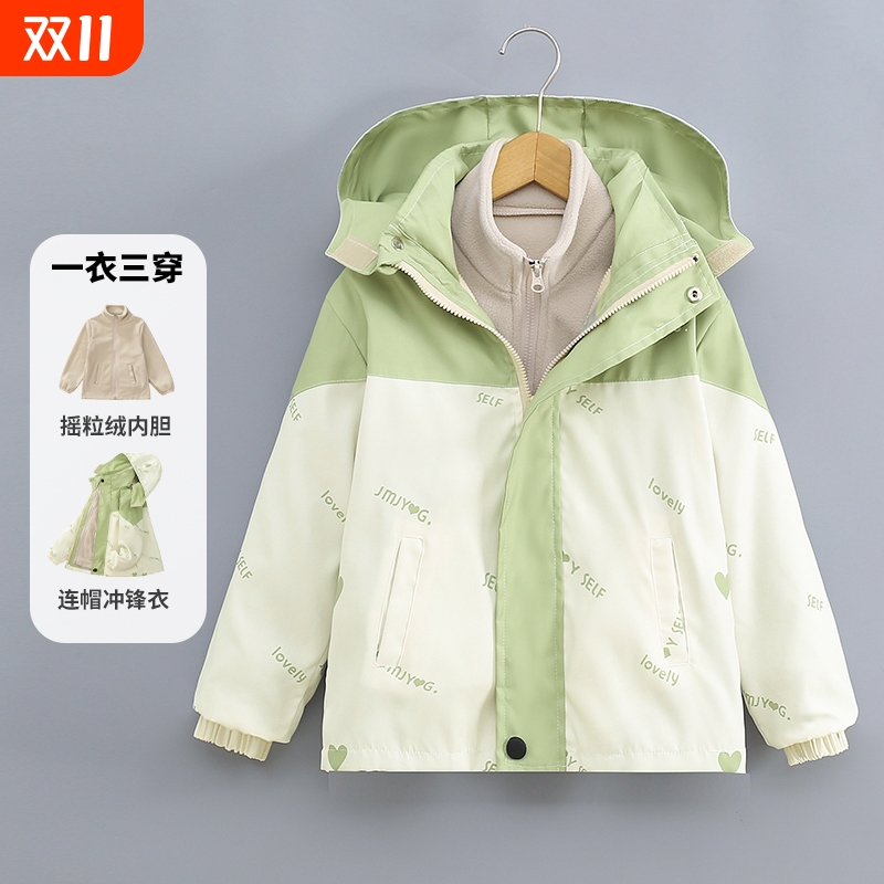 儿童装冲锋衣2025新款三合一可拆卸加绒女童外套春秋冬季两件套潮