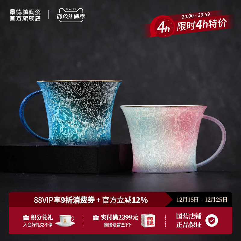 尊慕斯陶瓷咖啡杯碟套装高档精致手提高颜值杯子新婚礼物对杯礼盒