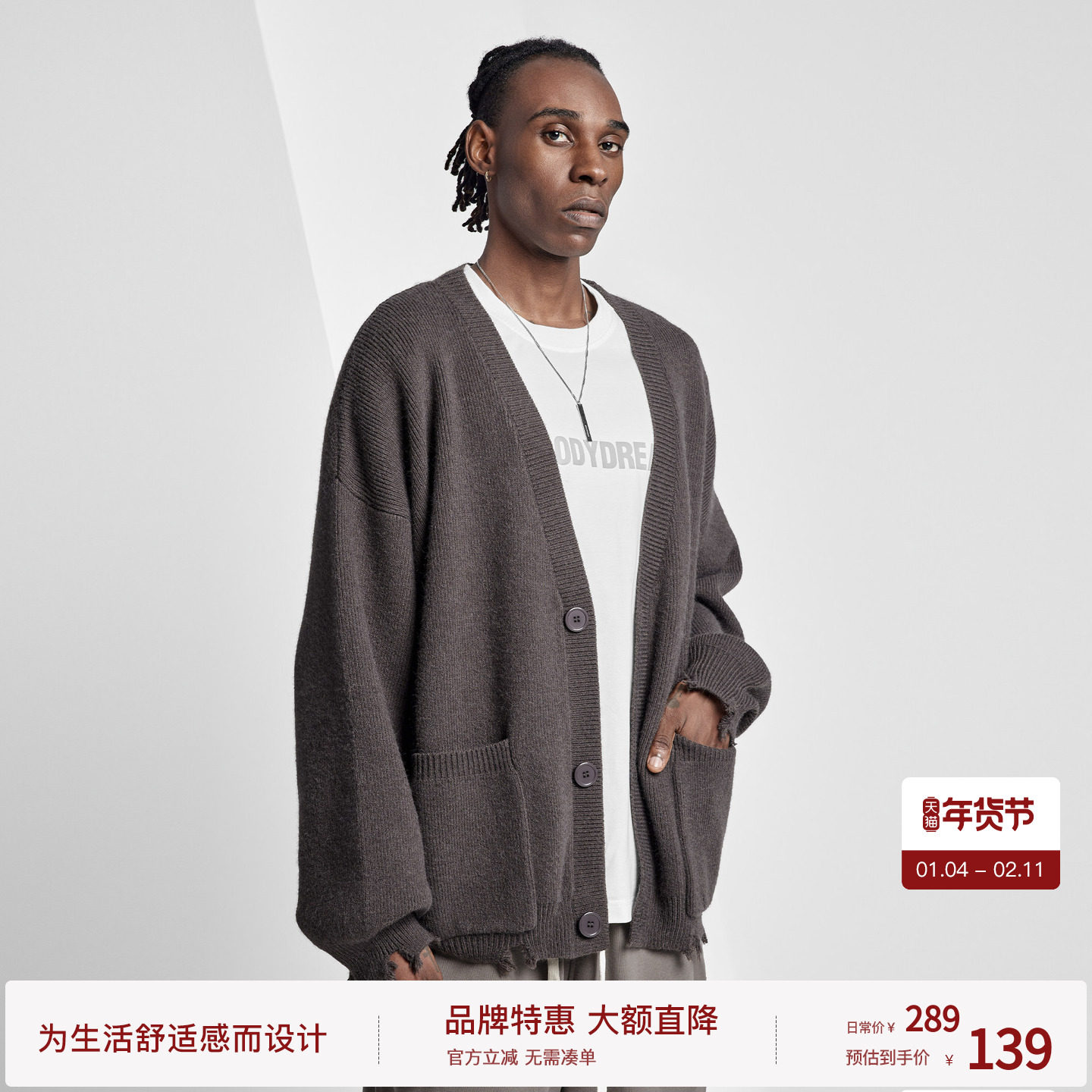 BODYDREAM毛衣外套男GeekChic复古高级开衫休闲通勤宽松V领针织衫