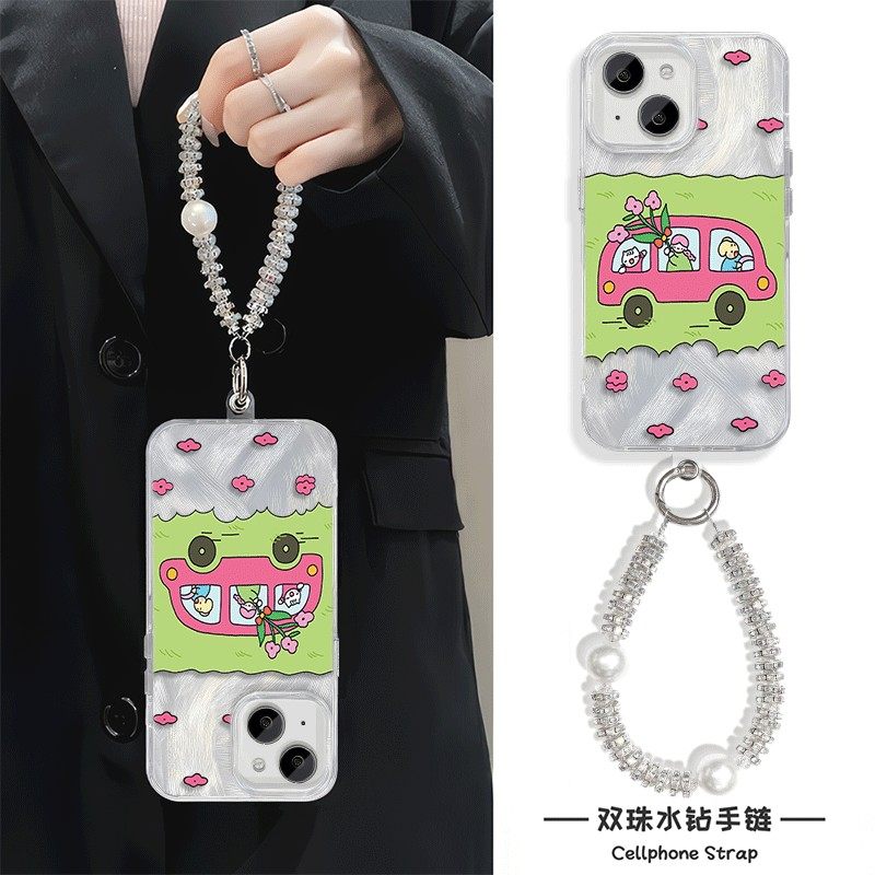 手机壳带挂绳iPhone16plus春游巴士15羽纱Nova12红米K80适用14ProMax硬苹果13高级感手链y300pro真我GTNEO6SE