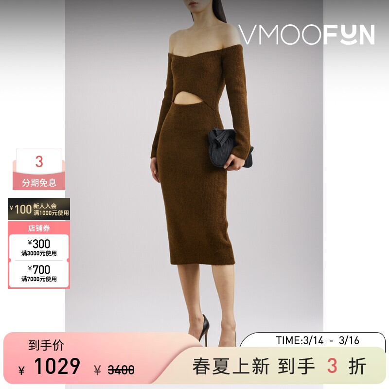 L'Agence Nala 春夏女露肩挖剪混纺针织中长连衣裙