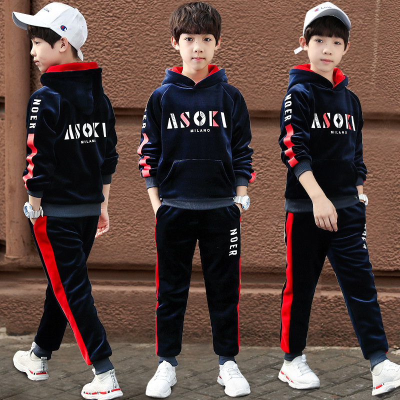 男童加绒套装2025新款冬装洋气小童中大童加厚连帽两件套装潮