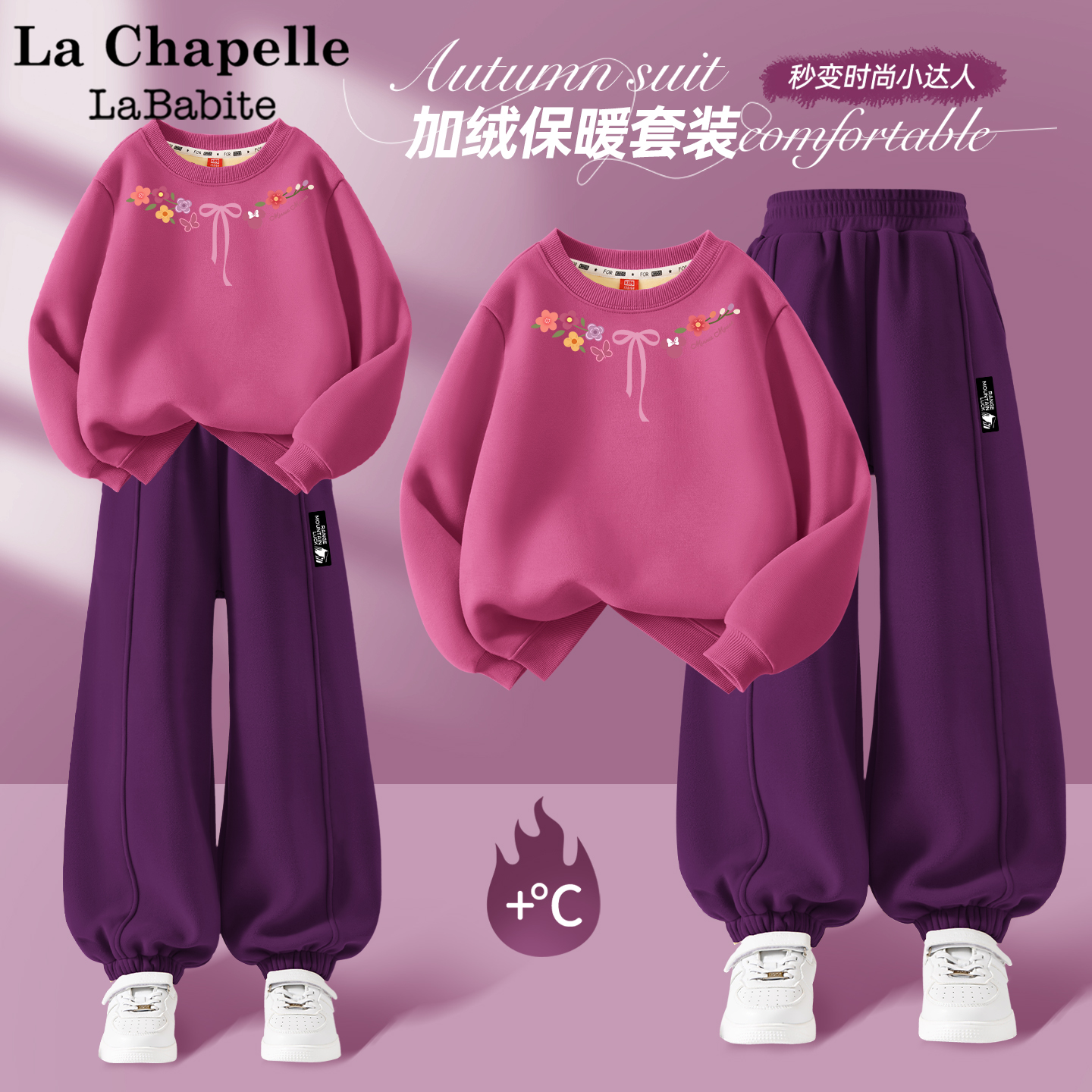 拉夏贝尔女童套装冬装2025新款大童女装加绒卫衣卫裤儿童时髦童装