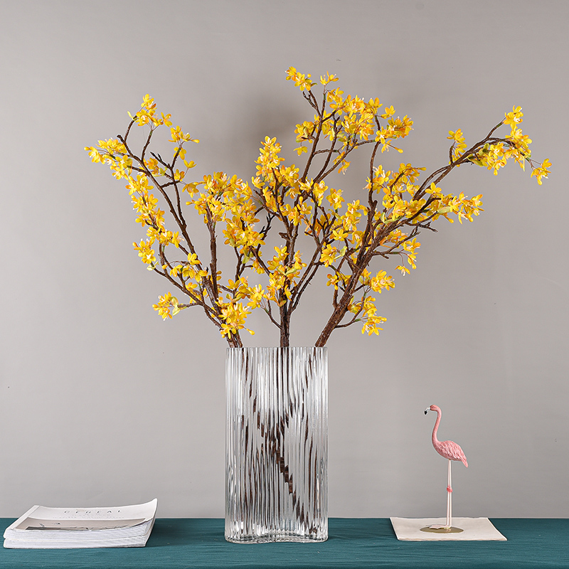客厅假花欧式花瓶摆件 仿真花假话花高品质室内摆设花迎春花插花