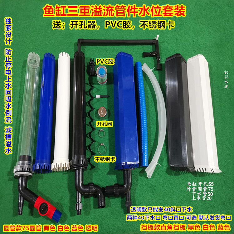 包邮鱼缸三重溢流管件套装水族箱底滤三通上下水一体过滤水位圆管
