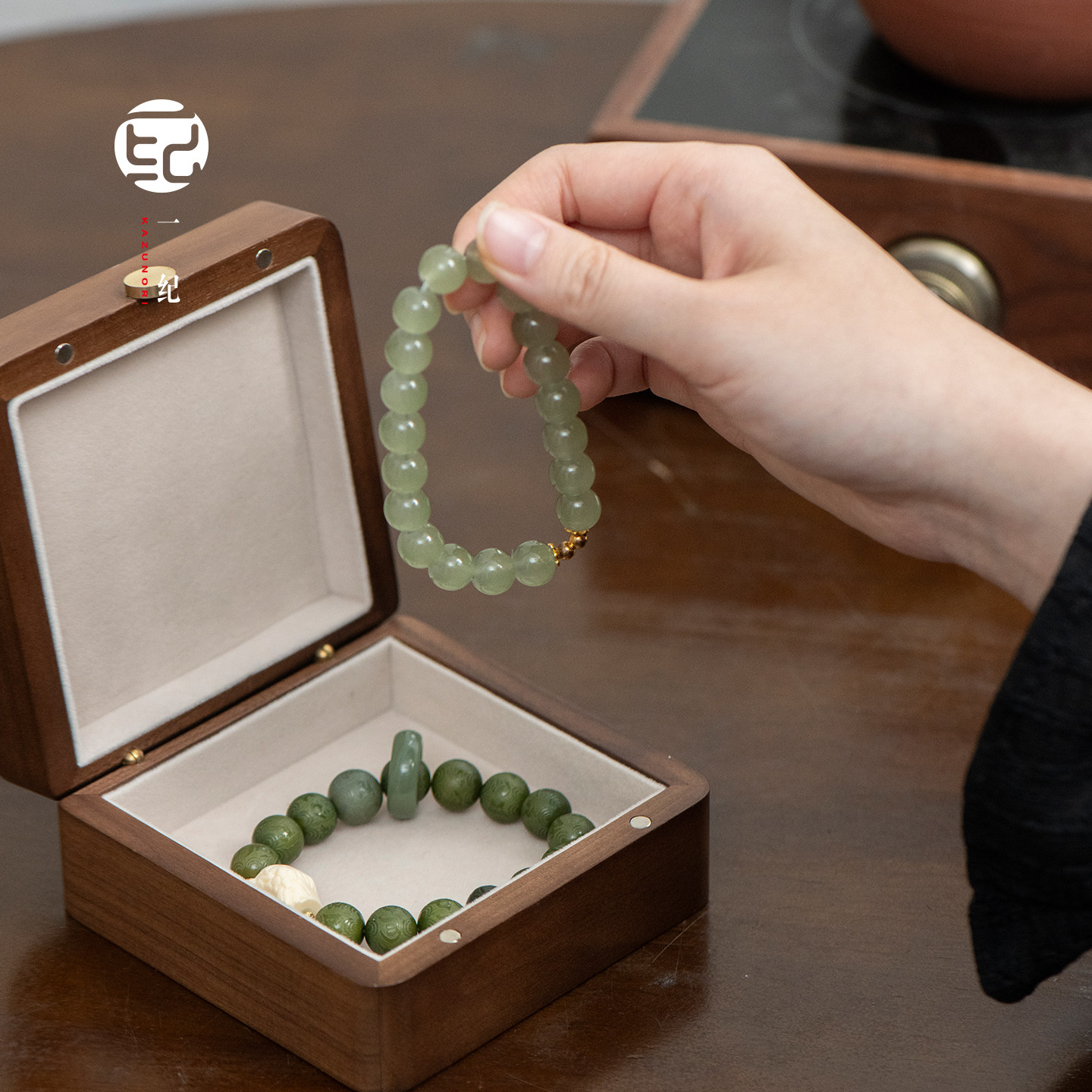 手串盒子高级感礼盒高档黑胡桃实木原创首饰收纳盒放茶室茶道配件