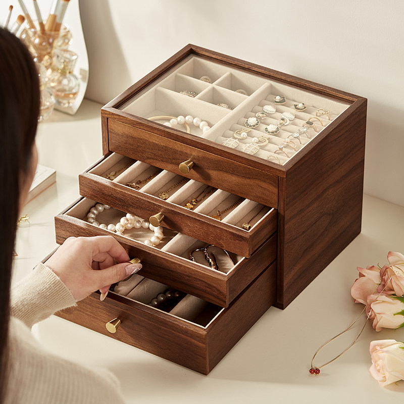 木质首饰盒大容量抽屉式珠宝饰品收纳盒多层项炼戒指耳饰手串盒子