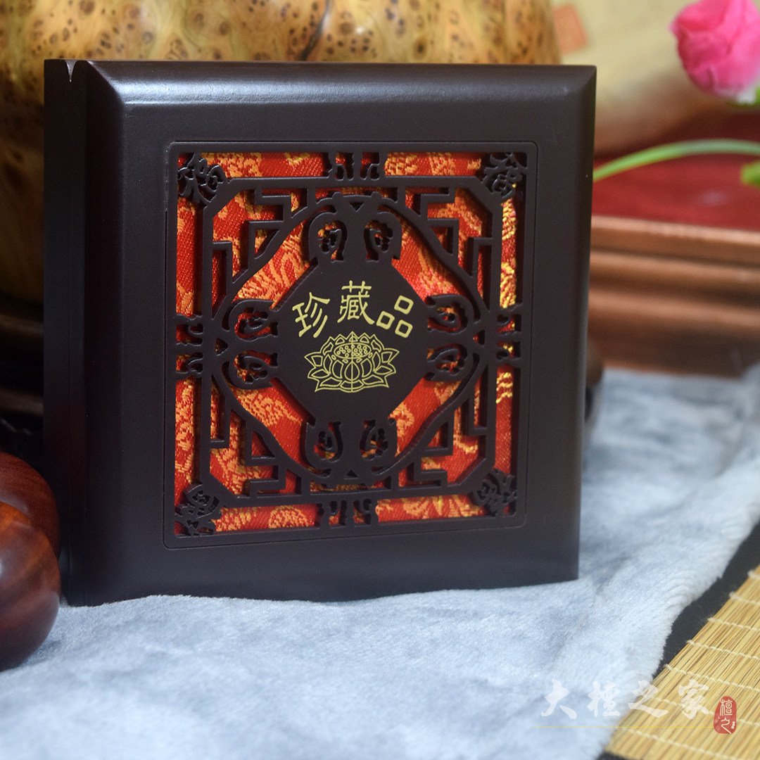 手串盒子黑色 礼盒佛珠手镯礼品手链包装收纳盒莲花图案高档木质
