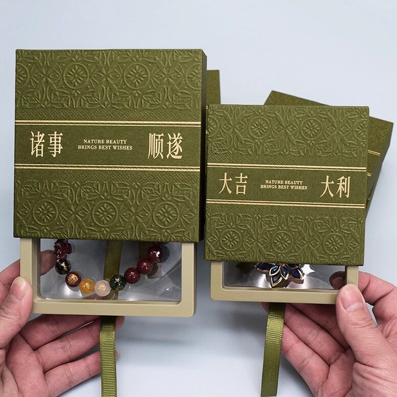 新款压纹抽拉盒十八籽手串盒子深绿色手镯包装盒防氧化高档首饰盒