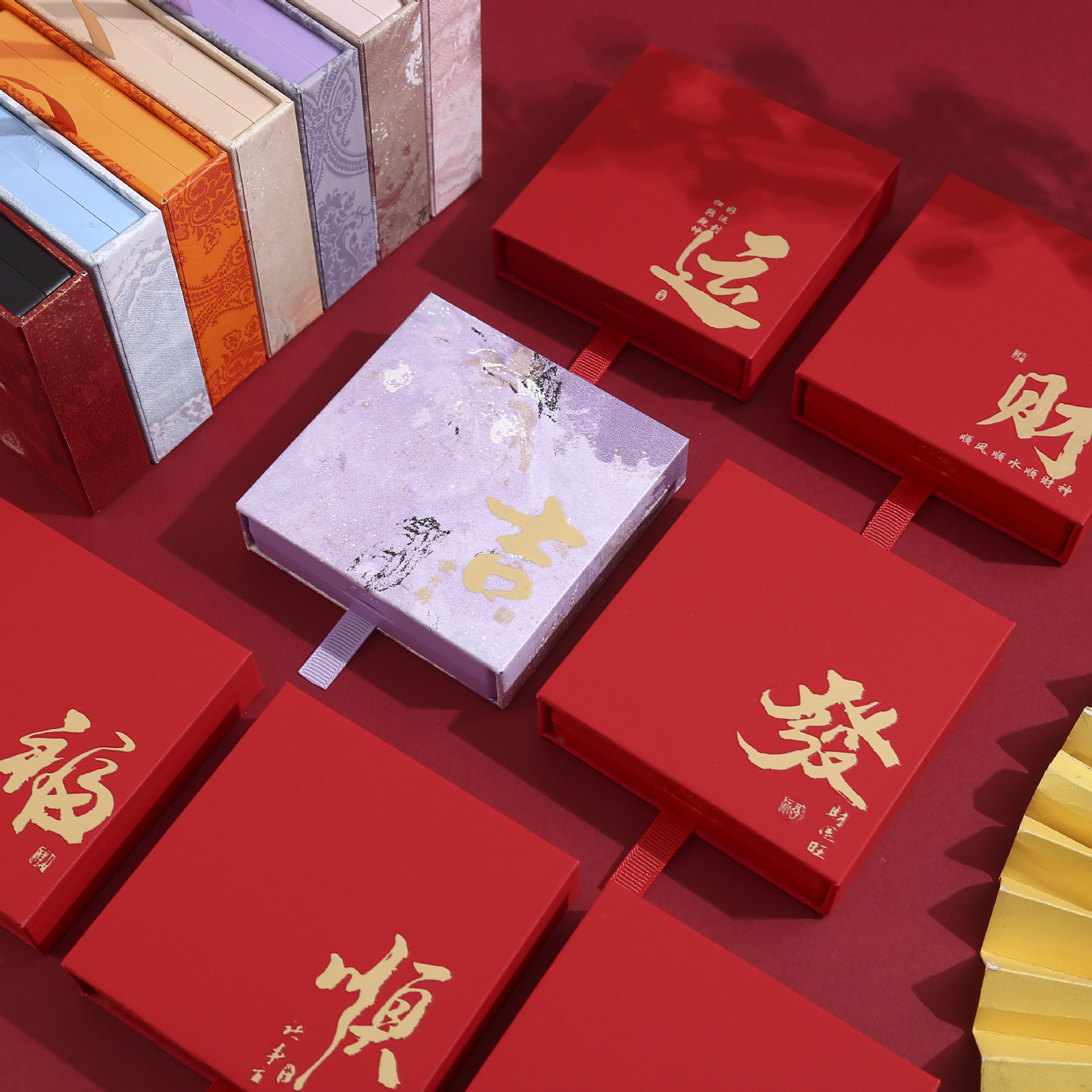 手串盒子高级感文玩抽屉盒PE膜悬浮收纳盒珠宝首饰手链包装盒红色
