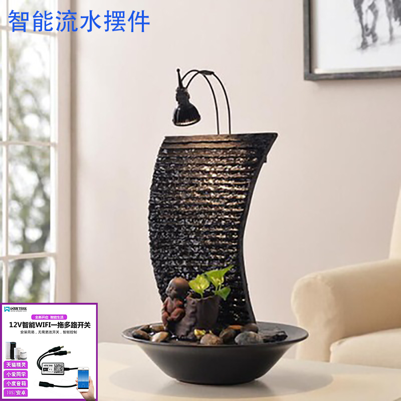 禅意流水喷泉招财生财摆件灯圈倒流香办公室装饰玄关客厅开业礼品