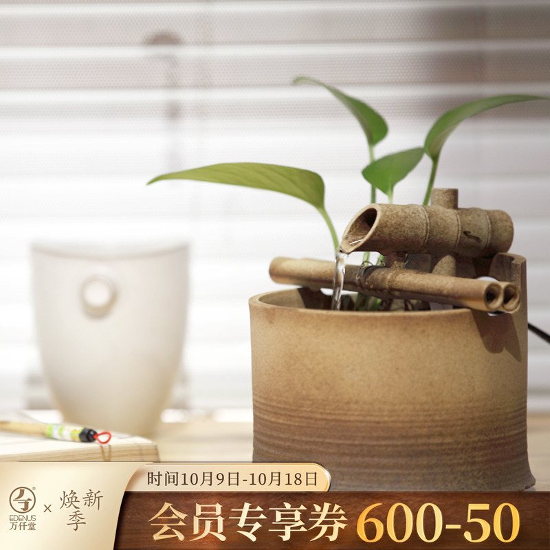 万仟堂陶瓷水循环系统流水摆件招财办公桌装饰中式喷泉竹语流水器