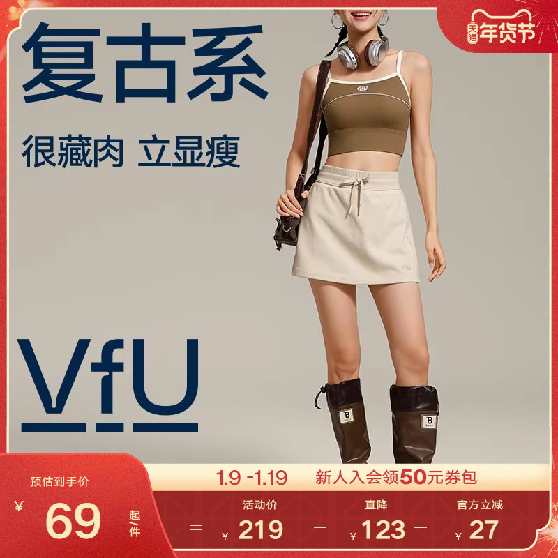 VfU运动半裙假两件短裙2025新款春季女小个子a字米白色半身裙子