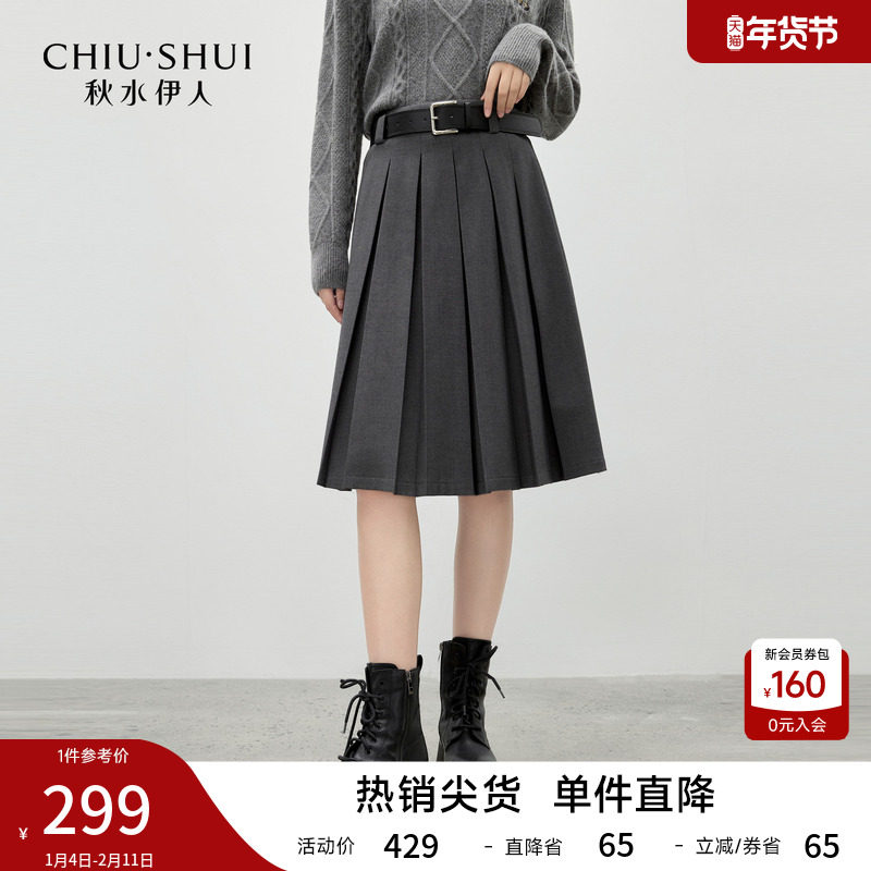 秋水伊人经典高腰A字半身裙2025年冬季新款灵动显瘦时尚百搭裙子