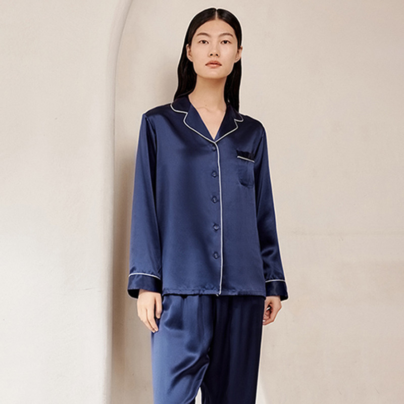 万事利真丝睡衣套装女长袖100%桑蚕丝情侣可外穿休闲家居服 晨曦