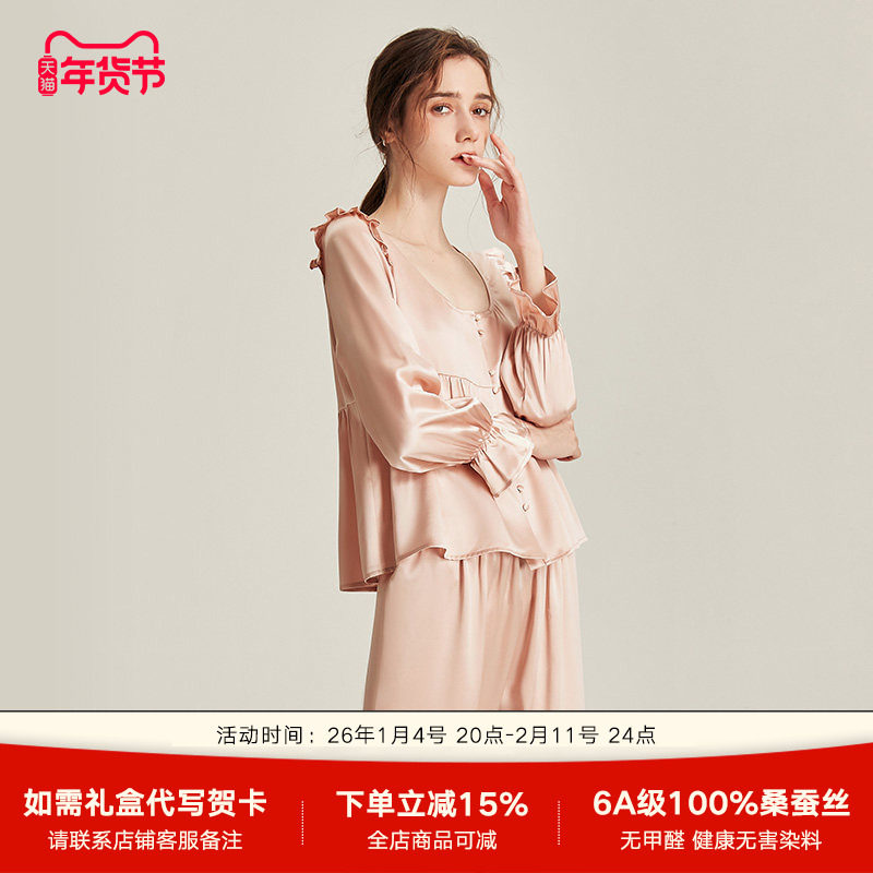 桑蚕丝真丝睡衣女夏2026年新款两件套装长袖宫廷风时尚休闲家居服