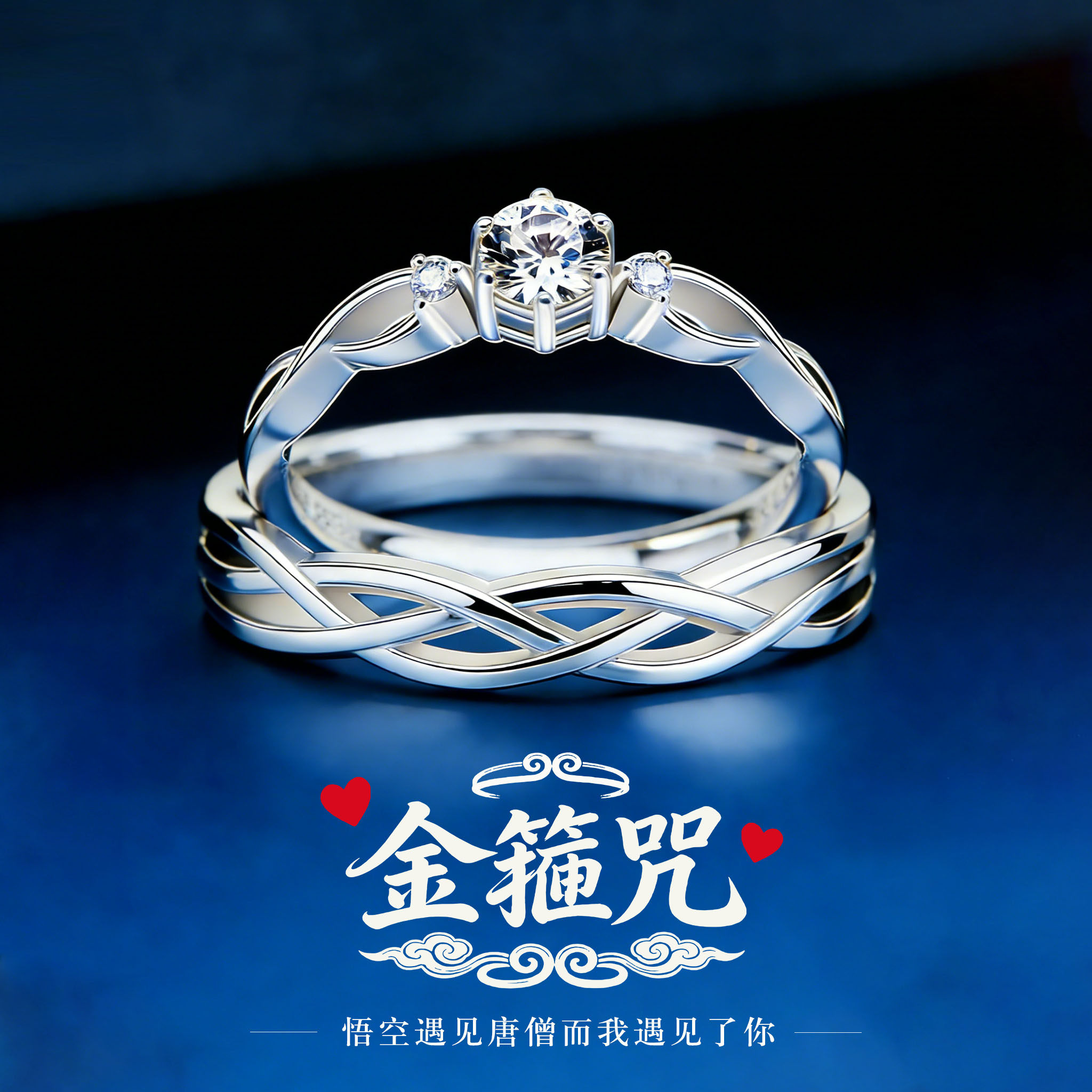 银999纯银戒指莫桑钻结婚对戒情侣一对闭口戒钻戒婚戒结婚情侣款