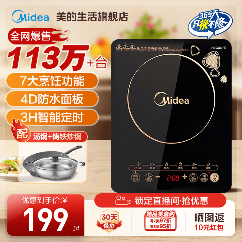 美的电磁炉家用多功能小型迷你智能新款炒菜电池炉锅一体节能宿舍