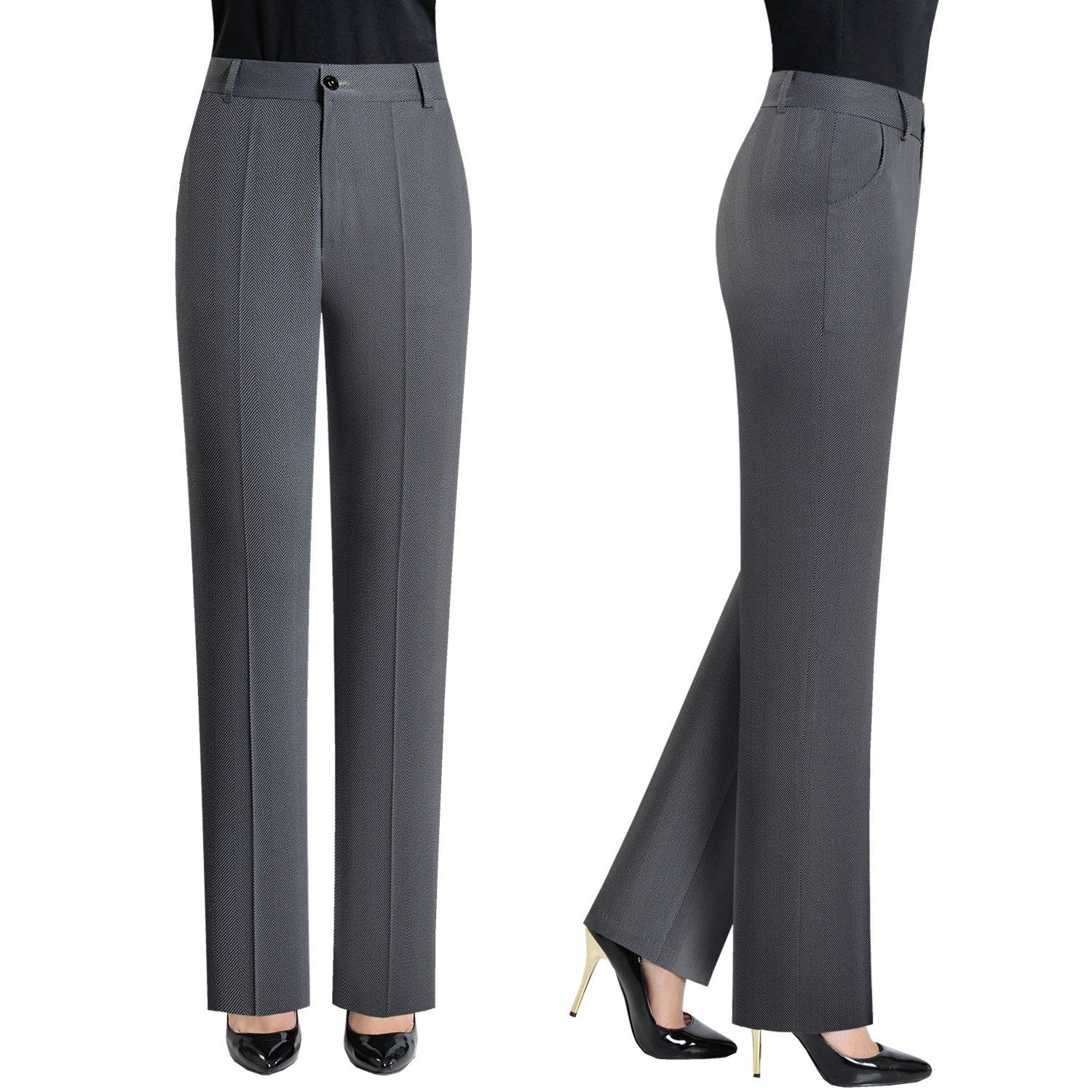 秋冬新款女裤弹力妈妈直筒裤高腰中年女式西裤休闲百搭长裤灰棕色