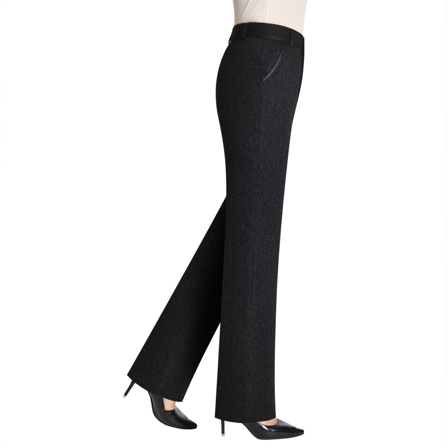 - 毛呢阔腿裤女秋冬九分黑色加厚