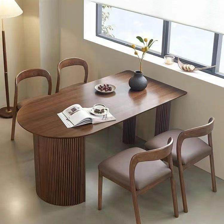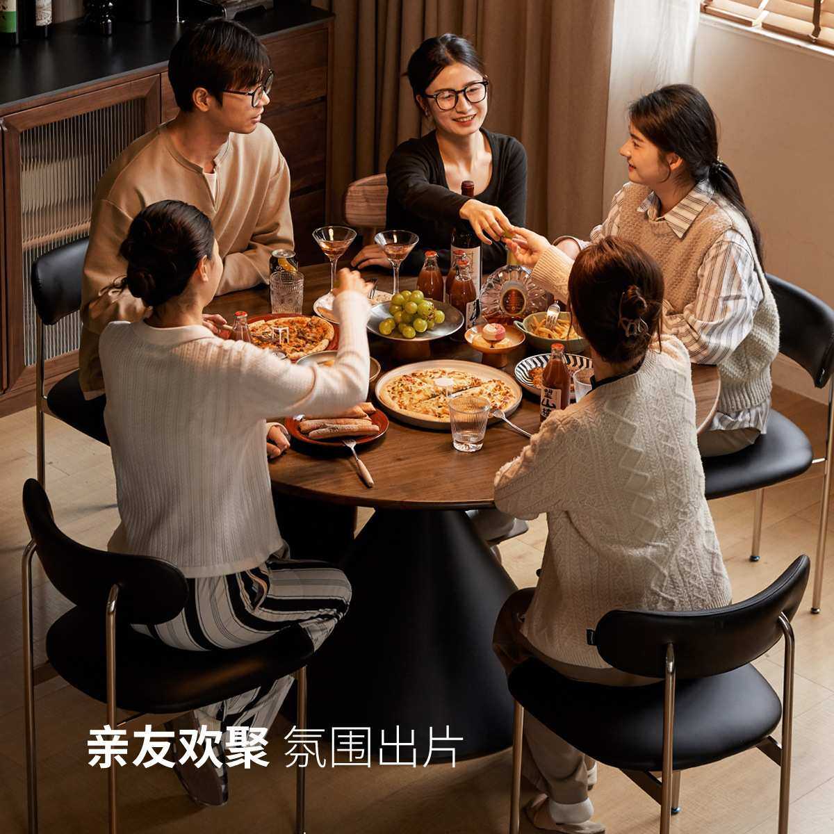 北欧现代实木餐桌黑胡桃木轻奢风吃饭桌小户型餐厅简约家用圆桌子