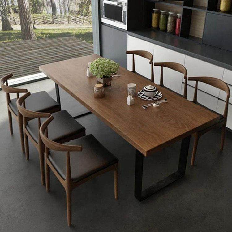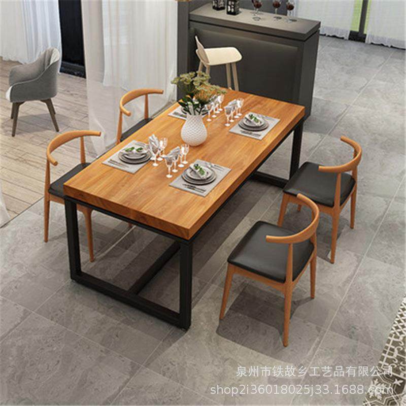 简约客厅长方形饭桌现代实木餐桌椅组合 酒店餐厅铁艺火锅桌家用