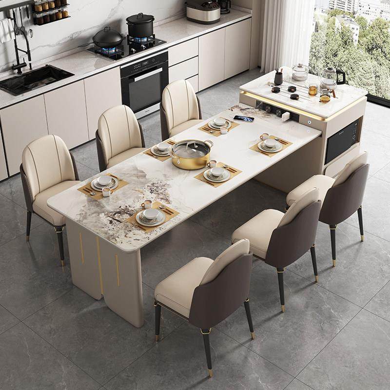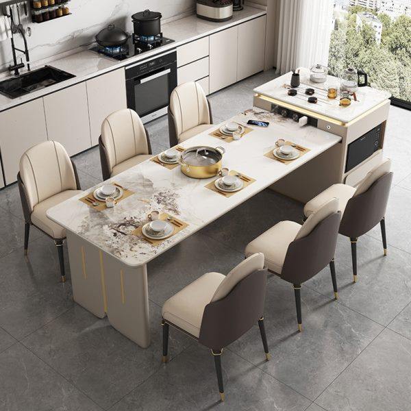 岛台餐桌一体伸缩多功能简约现代实木餐桌椅组合高级开 放式茶桌
