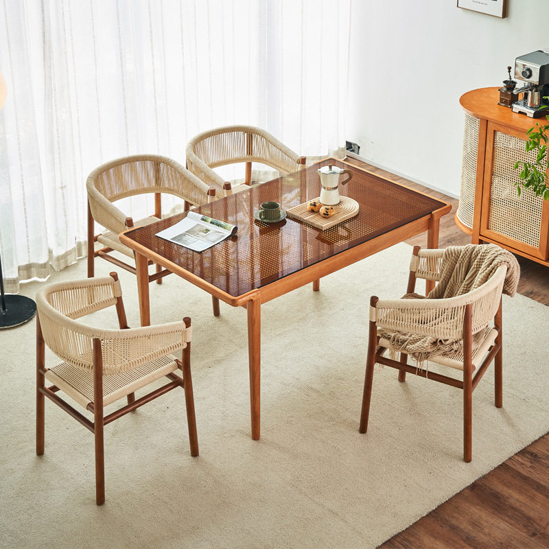 新中式简约藤编餐桌现代实木餐桌椅组合家用ins小户型白蜡木饭桌