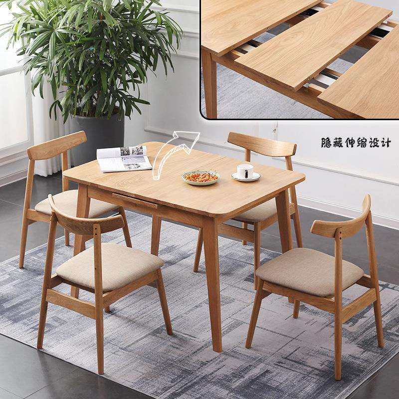 餐桌家用小户型可折叠伸缩现代简约实木桌子奶油风餐桌椅组合高端
