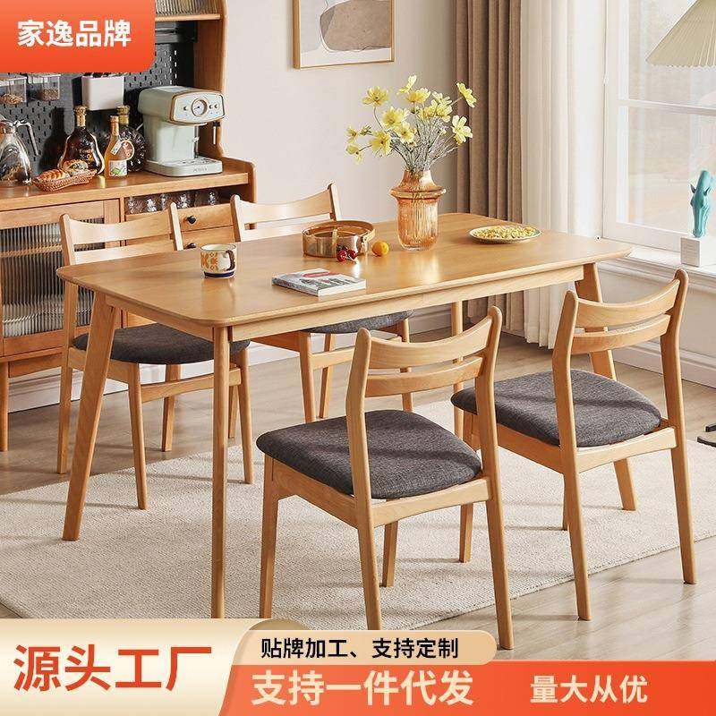 全实木餐桌家用小户型北欧原木餐桌椅组合现代简约长方形吃饭桌子
