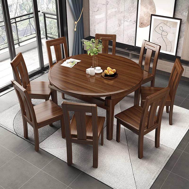 中式餐桌简约胡桃木方圆两用折叠伸缩现代实木餐桌家用小户型饭桌