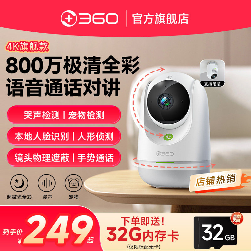 【360官方旗舰店】无线监控9PRO摄像头云台7MAX家用网络WIFI摄影头家庭录像宠物8/9P监控器360度全景高清夜视