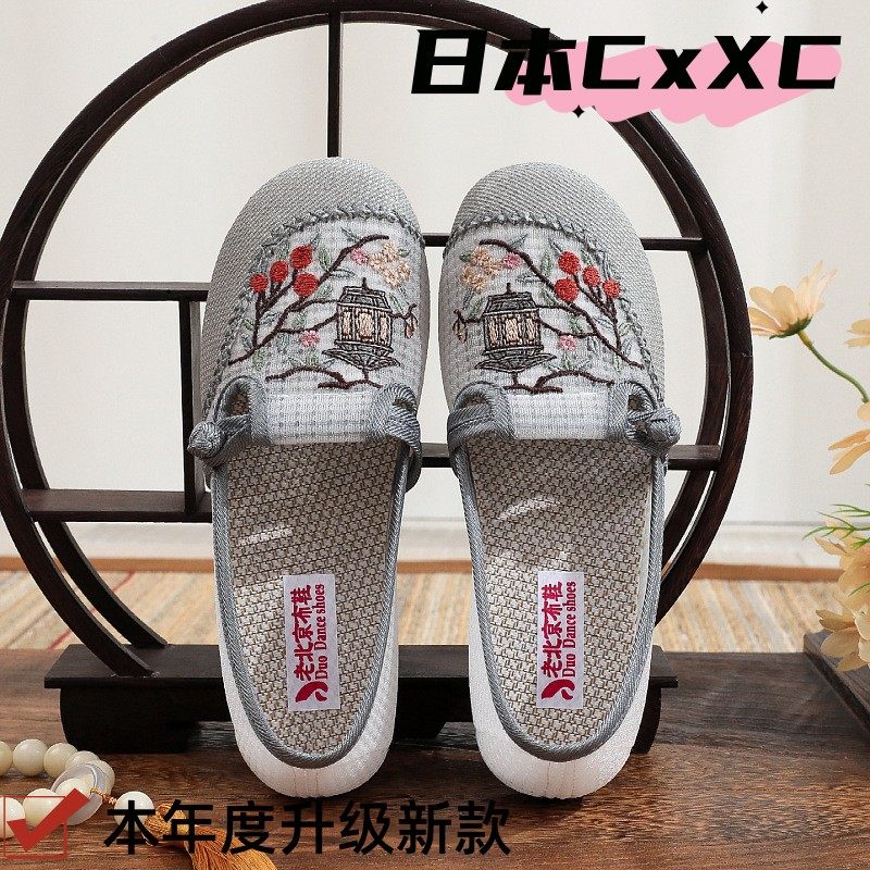 春夏老北京新中式布鞋女绣花一脚蹬平底妈妈鞋百搭透气单鞋民族风