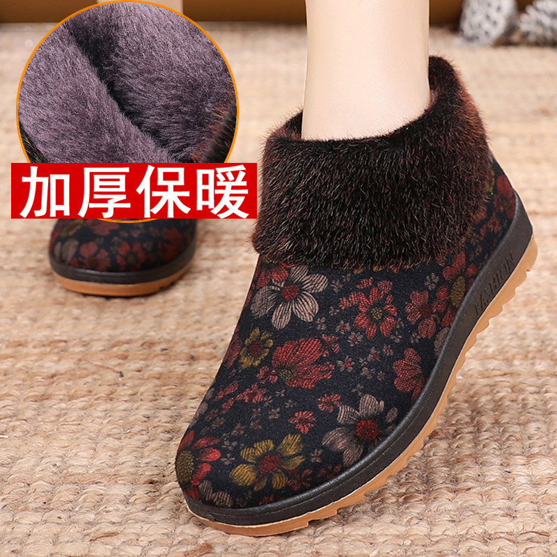 妈妈棉鞋女老北京布鞋防滑中老年棉鞋保暖奶奶鞋软底兔毛老人短靴