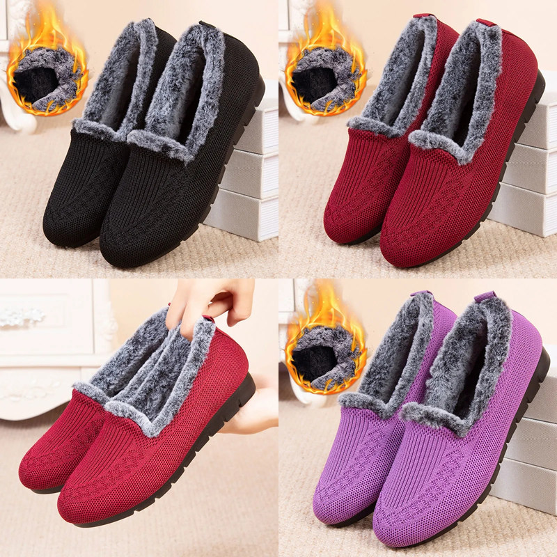 冬季新款加绒毛毛鞋女老北京布鞋女防滑保暖软底加厚平底豆豆棉鞋