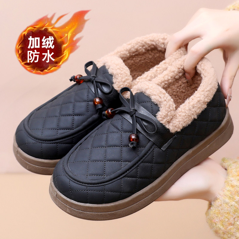 冬季加绒防水棉鞋女老北京布鞋女棉鞋一脚蹬保暖舒适防滑妈妈棉鞋