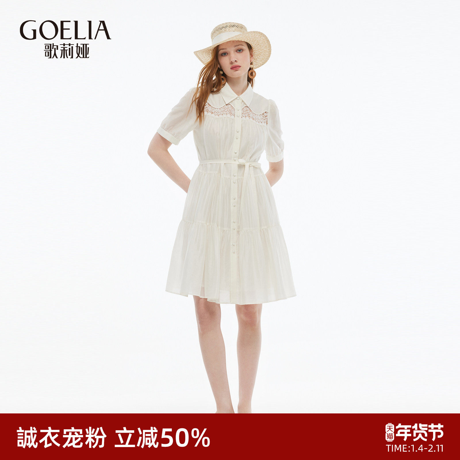 菲梦伊提花衬衫连衣裙女夏季高级感轻熟气质独特绝美花边包臀裙子