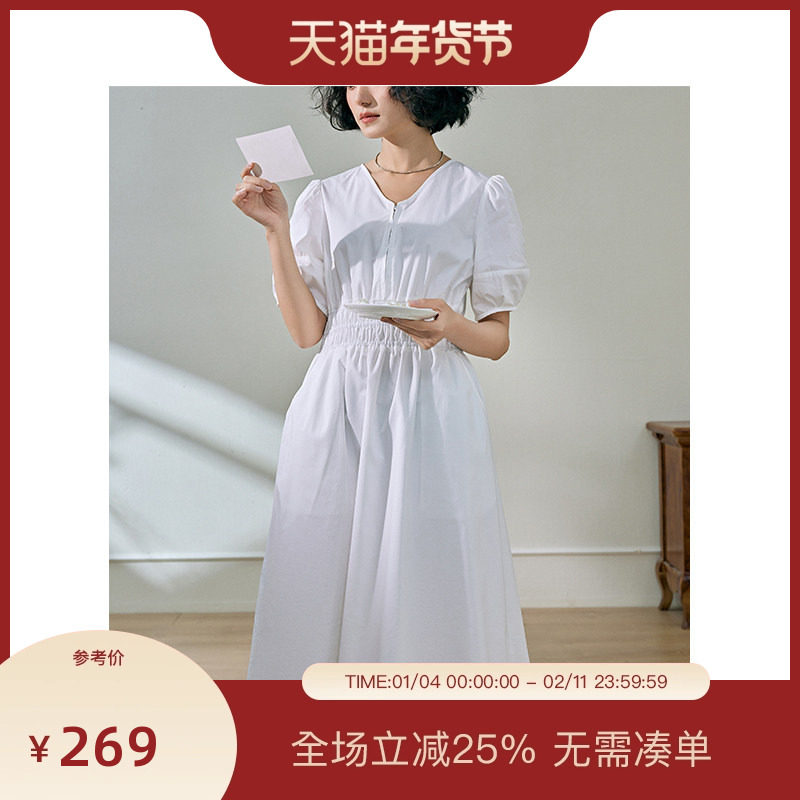 菲梦伊法式气质连衣裙女短袖夏季独特绝美收腰优雅中长款开叉裙子