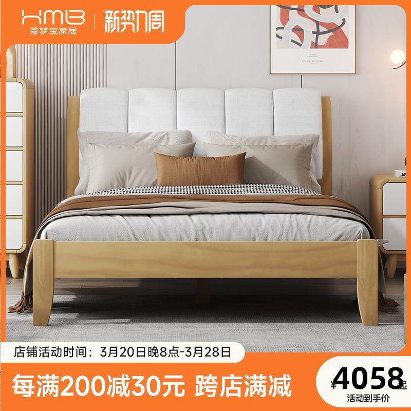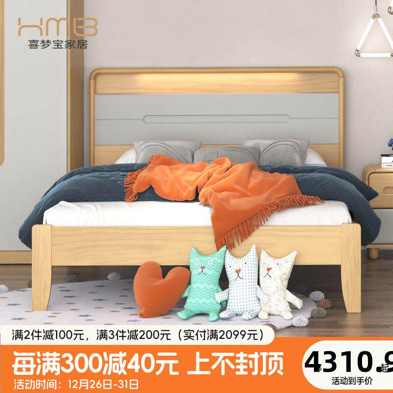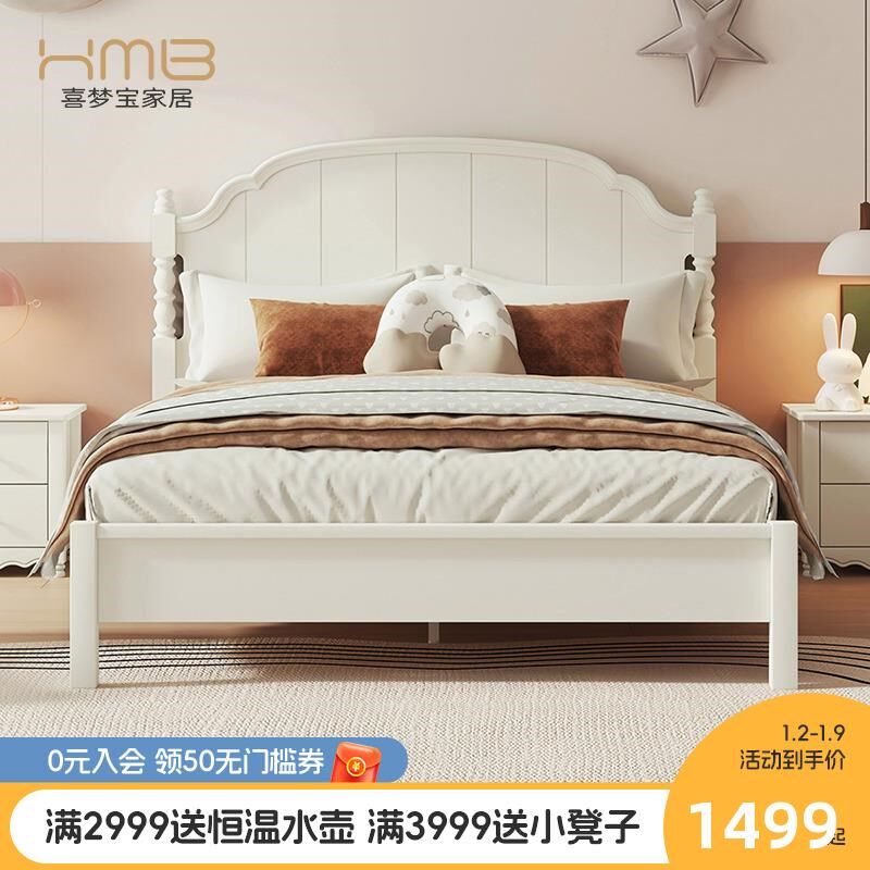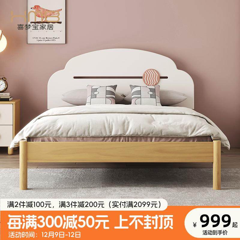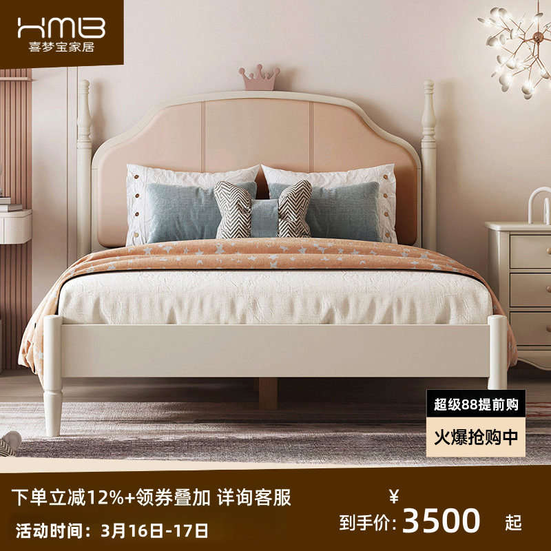 喜梦宝全实木儿童床双人床公主床卧房现代简约软包实木床家具大白