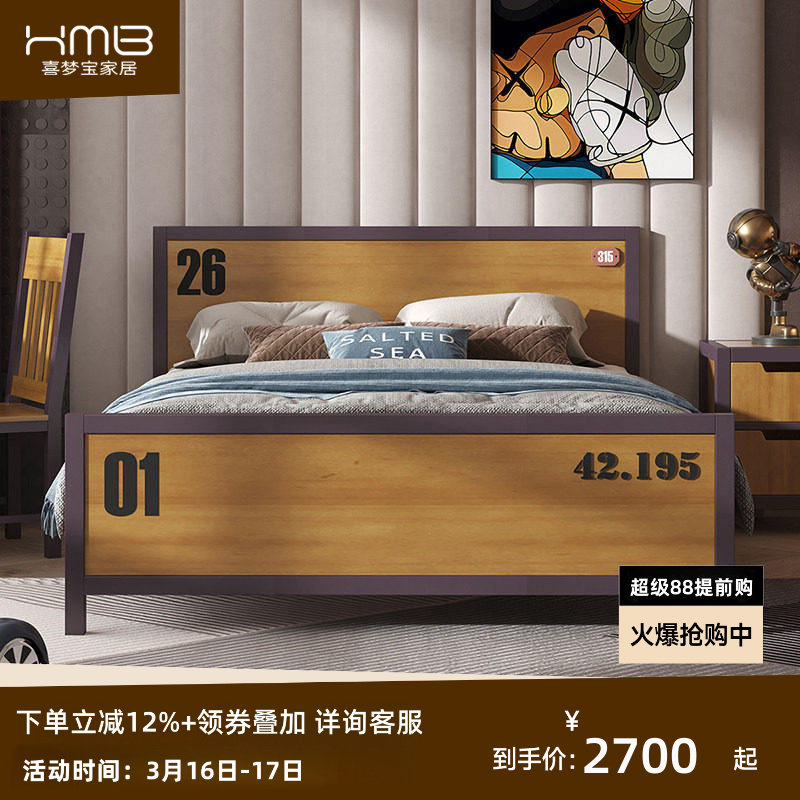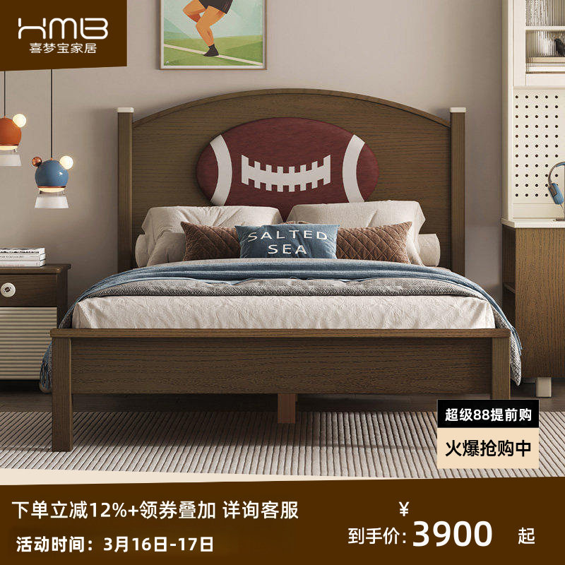 喜梦宝橄榄球美式实木儿童床加高靠背床头软包设计卧房活力运动风