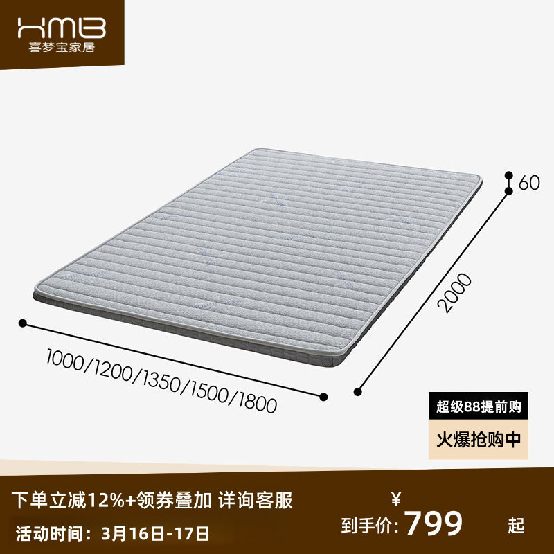 喜梦宝折叠椰棕床垫多场景通用榻榻米儿童床舒适针织面料软硬适中