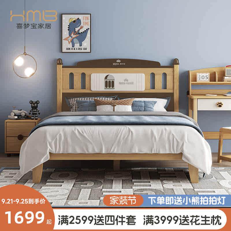 喜梦宝实木床脚儿童床男孩单人床现代简约青少年床1米5小户型家具