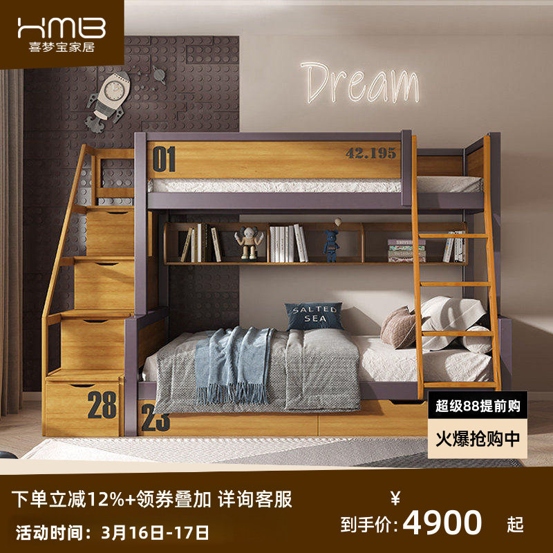 喜梦宝马拉松运动风北欧全实木子母床儿童上下床小户型家用高低床
