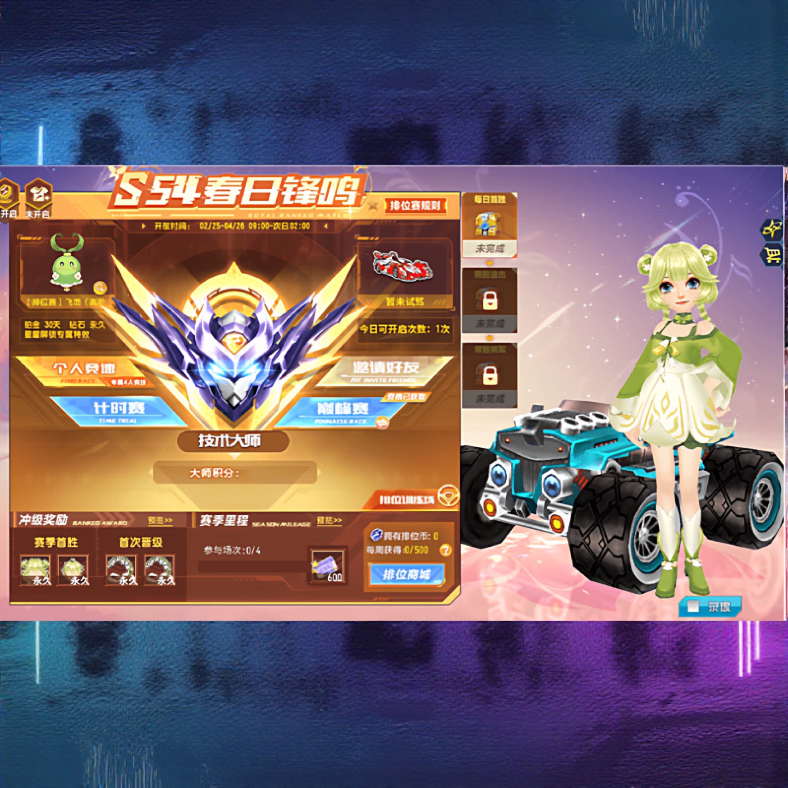 QQ飞车端游排位代练钻石/星耀/技术大师【直播秒上 纯手动效率】